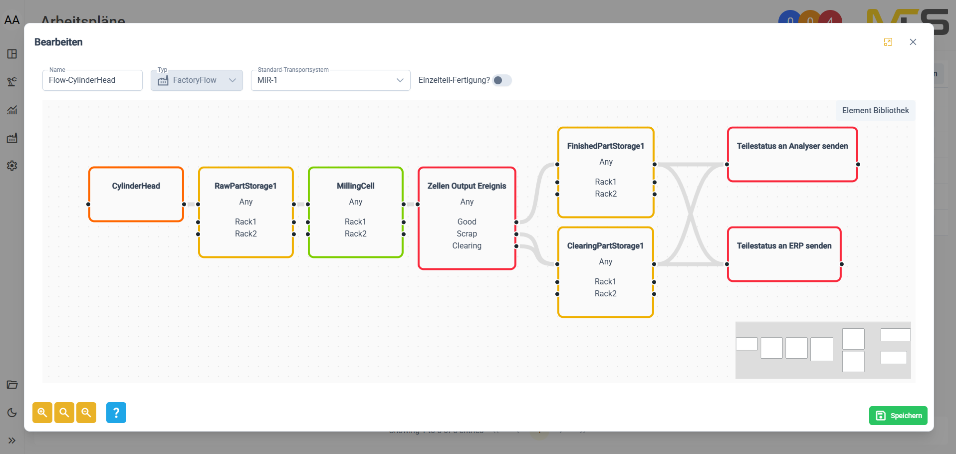Der grafisch programmierbare Arbeitsplan ist das Herzstück des MCS. Damit lassen sich Abläufe visuell modellieren, flexibel anpassen und sofort live in der Produktion umsetzen – ganz ohne tiefgreifende Programmierkenntnisse.